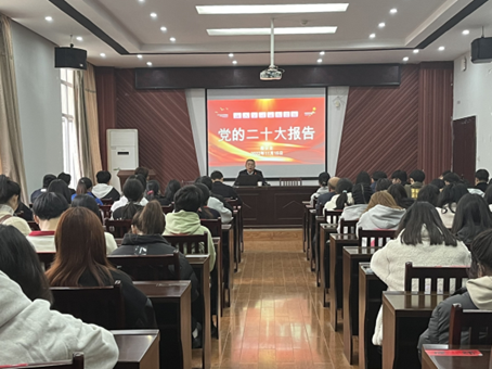 殷安全从党的二十大背景、重大意义、报告的主要内容以及对青年学生的建议四个方面进行宣讲,重点围绕大会主题、过去五年的工作、新时代十年的伟大变革、中国式现代化的特征、“五个必由之路”等内容进行了全面阐述,并紧密联系学校纪检监察工作和课程思政工作,系统讲解了如何在今后的学习工作中更好地贯彻落实党的二十大精神。同时,殷安全勉励青年学生坚定理想信念,树立远大理想,勤奋学习,苦练本领,脚踏实地努力奋斗,以实际行动为学校事业发展贡献青春力量。