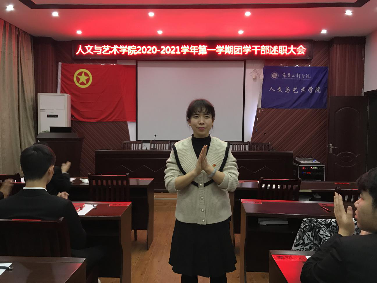 为持续推动我院团学工作和队伍建设不断发展,让学生会全体成员对各部门工作有更深入的认识,更好地促进各部门之间的工作交流,12月28日下午15时,人文与艺术学院于艺术楼A230开展了2020-2021学年第一学期团学干部述职会议。党委书记熊华林、党委副书记王锐、组织员蒿佳杭、团委副书记丁蓓蒂、辅导员黄一诺、张淑华出席本次会议,各部门团学工作负责人以及团学干部参加了此次会议。
