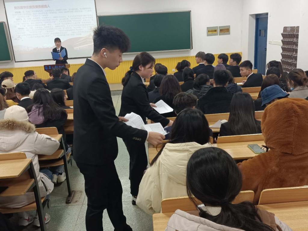 大会在全体人员合唱的国歌声中拉开帷幕。丁蓓蒂致开幕词,她强调各级学生会组织成员要在未来的工作中始终坚持正确的政治方向,坚持学生主体地位。同时,各级学生干部还要始终贯彻全心全意为同学服务的宗旨,团结带领广大同学书写更加壮丽的青春篇章。随后,分团委学生副书记金思琪宣读此次大会代表资格审查小组名单,计票、监票小组人员名单和代表资格审查报告。第三届团委委员及第九届学生委员会委员审议报告并顺利通过。之后,进入发放选票的环节,全体学生对候选人进行无记名投票,并由工作人员进行计票工作。