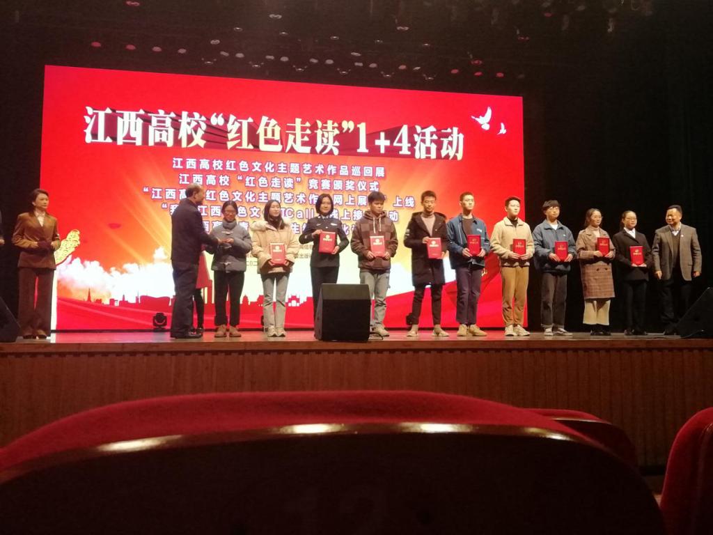 红色走读1+4活动,1即“江西高校红色文化主题艺术作品巡回展”首展;4即“江西高校青年大学生红色文化论坛”,对获奖团队进行表彰,启动两项线上活动(“江西高校红色文化主题艺术作品网上展播”和“我为江西红色文化打Call”)。