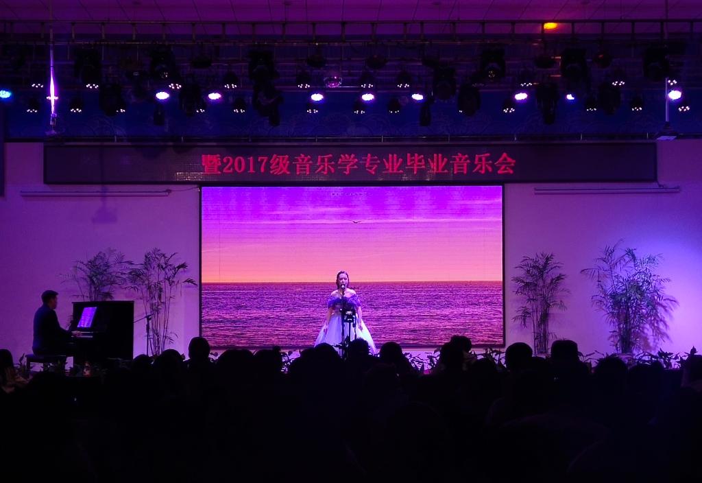 为营造良好的校园文化氛围,展现专业风采,11月9日晚19:00,由教务处、党委宣传部、校团委、学工处、人文与艺术学院主办的“水之韵”音乐会——胡玉兰老师教学汇报演出暨2017级音乐学专业毕业专场音乐会在大学生活动中心多功能厅隆重举行。本次音乐会为2017级音乐学专业学子毕业专场,音乐学专业老师莅临,2017级音乐学毕业生参加了此次活动。