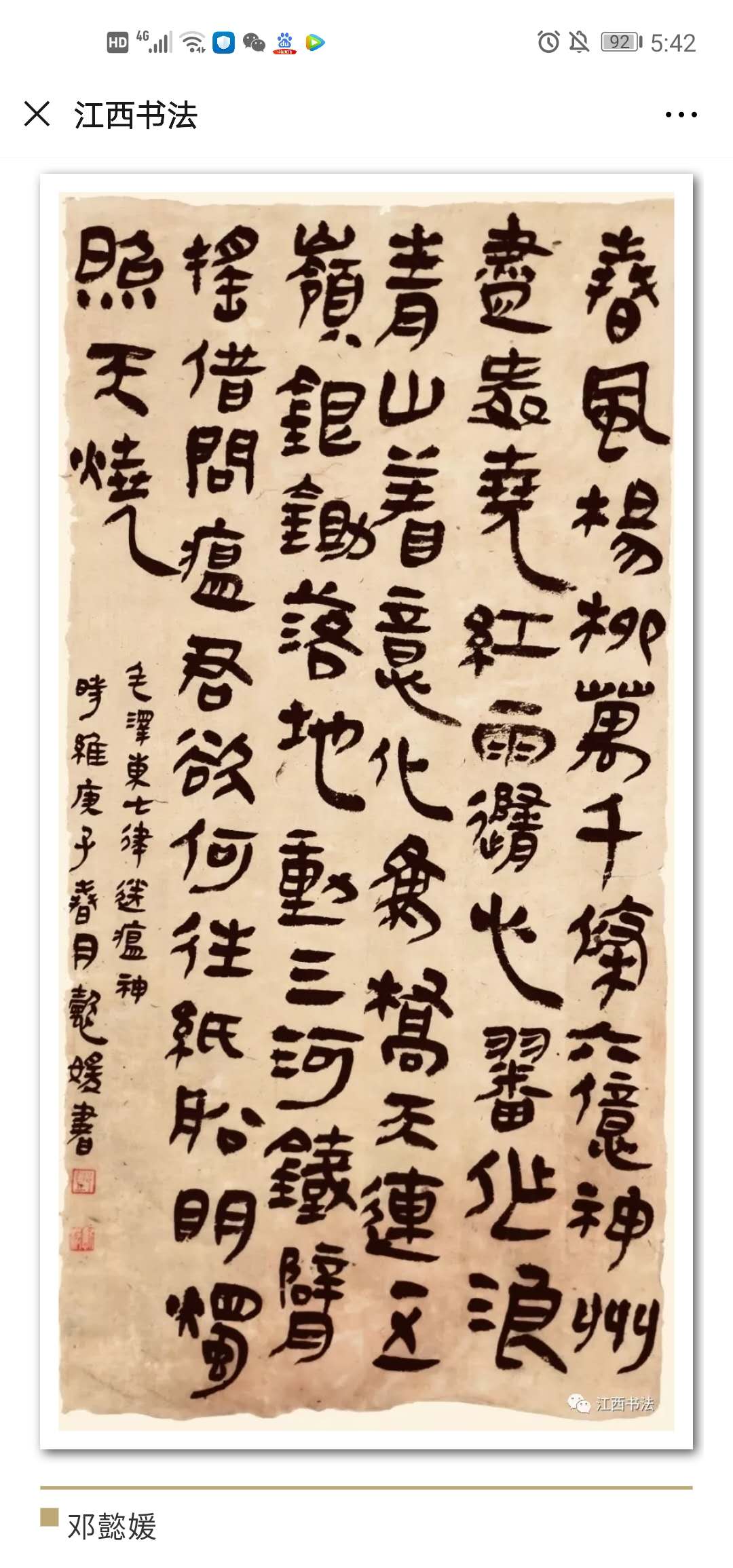 近期江西省书法协会发出“同心协力,抗击疫情”主题书法作品征集活动,人文与艺术学院教师党员邓懿媛积极响应,以笔墨书写心声。方圆相济,一首《七律·送瘟神(其二)》跃然纸上,以书法艺术的特殊方式为武汉、为中国加油!“借问瘟君欲何往,纸船明烛照天烧。”表达了邓懿媛对我国终将打赢这场战“疫”的信心。