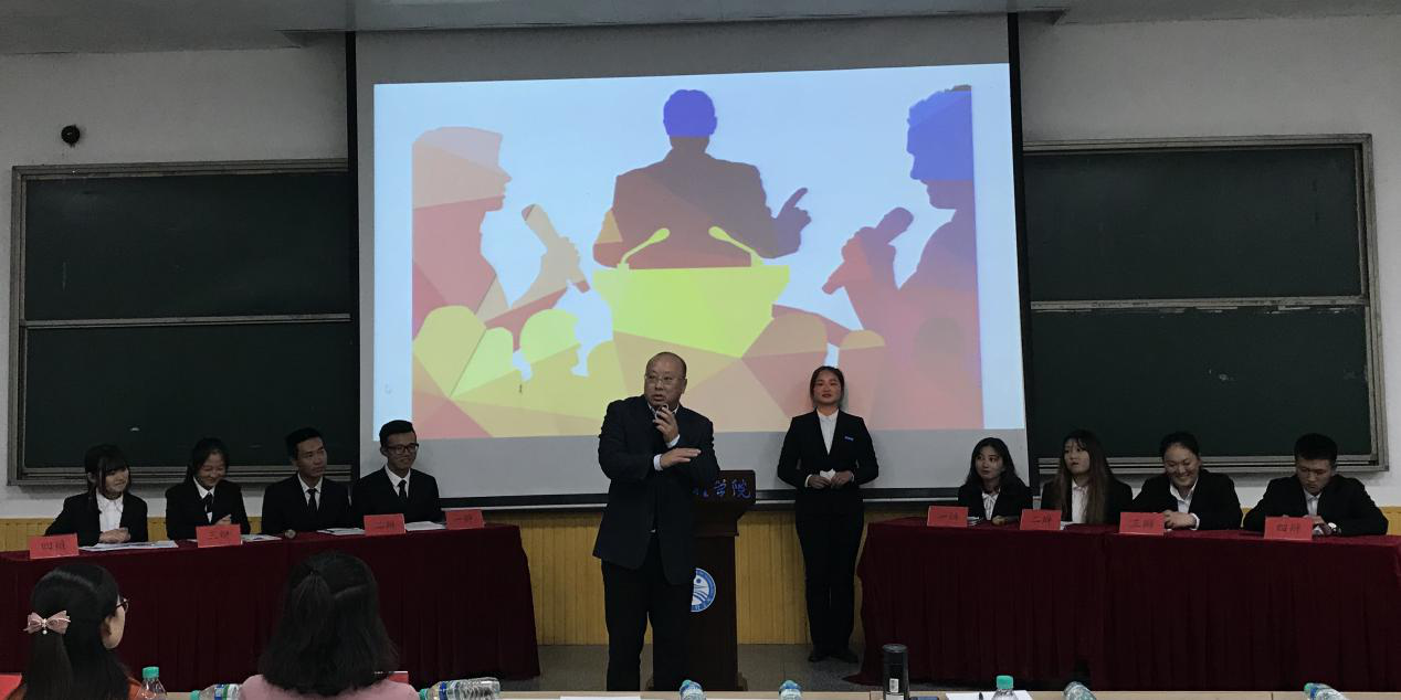 我院为深入学习贯彻习近平新时代中国特色社会主义思想,领会党的十九大精神,丰富同学课余生活,活跃校园气氛,促进班级之间的友好关系,提升班级凝聚力,体现当代大学生风华正茂的精神状态,提高同学辩论水平,发掘培养辩论人才。举办了第十五届“诚信杯”辩论赛,经过几场比赛的激烈角逐,设计学四班和新闻传播学二班两个代表队脱颖而出。决赛于11月20日晚在南C105举行,出席本场比赛的嘉宾有校图书馆馆长李雪枝、人文与艺术学院党委书记熊华林、人文与艺术学院团委书记蒿佳杭、班主任代表刘焰老师和李海铭老师出席本场比赛,我院伍燕璆老师和黄一诺老师担任本场比赛教师评委,院辩论队郑海锋、吴庄、尹昊担任本场比赛学生评委,各院部分19级同学观摩了此次比赛。